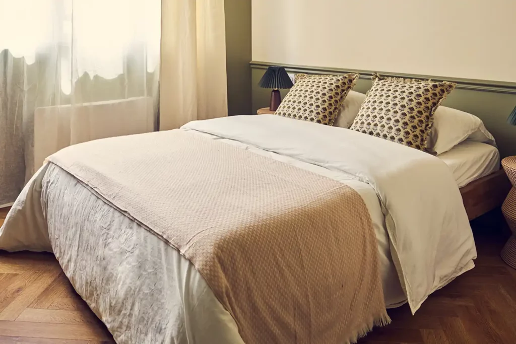 Une magnifique chambre avec salle de bains et WC privatifs.